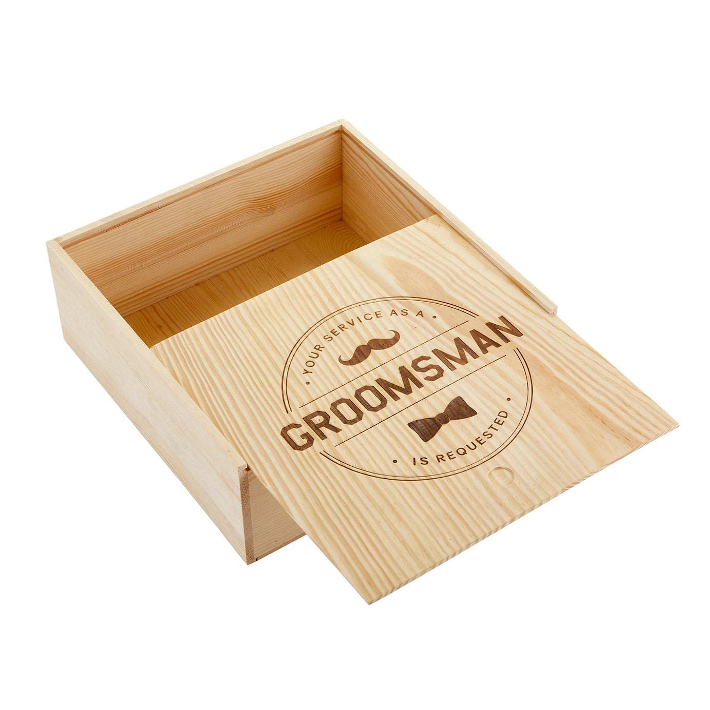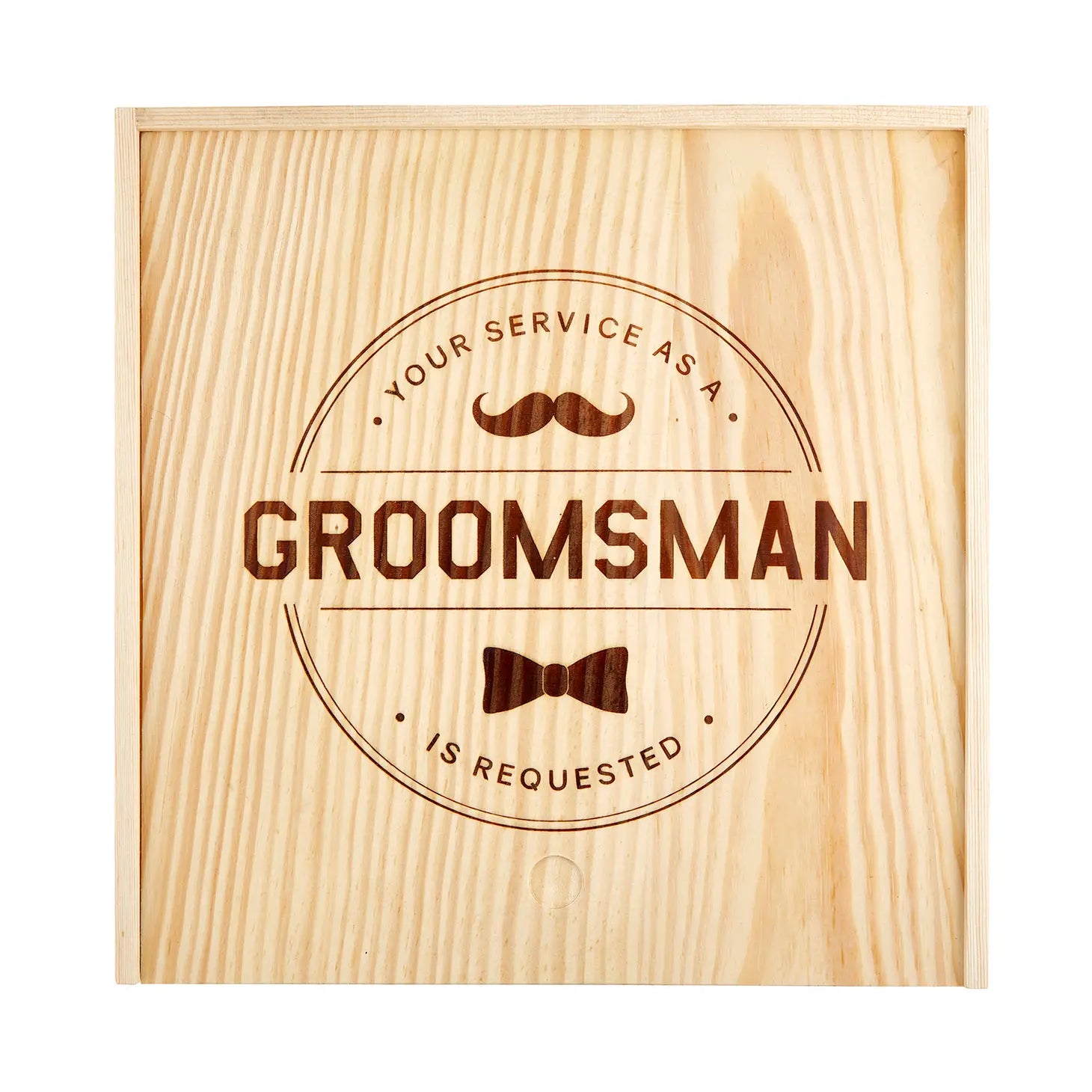 Ask your groomsmen to stand by your side with this pine keepsake box. Perfect size to add all their favorite things. · Material: Pine · Size: 11.25" W x 11.25" H x 4.25" D · Care Instructions: Spot Clean Only